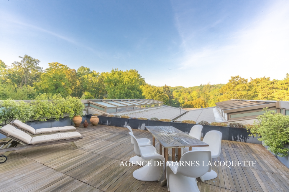 Sur un exceptionnel terrain dominant de 3500m² projet en cours d'une maison contemporaine de 300 m² habitables ( PC accepté, fondations abouties) avec piscine, beneficiant en annexe d'un loft en penthouse de 500m² d'espaces utiles dont 250m² de surfaces habitables comprenant un vaste espace de réception doté de 2 terrasses en bois exotique sud et ouest avec vue à 180° sur la forêt domaniale, cuisine US équipée, bureau et 3 suites. En étage inferieur 280m² d'espaces aménageables avec possibilité piscine intérieure, salle de sport, salle de cinéma etc .... Exceptionnel havre de paix et de verdure, dans un quartier très résidentiel, proche des établissements scolaires réputés Daniellou et Passy-buzenval, à 15 mn de La Défense et de l' Etoile.
