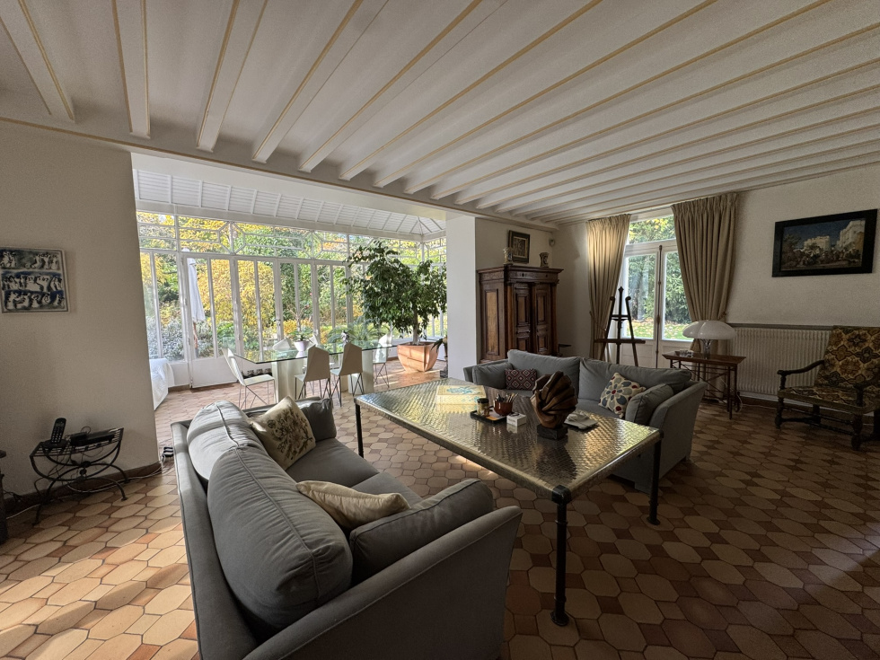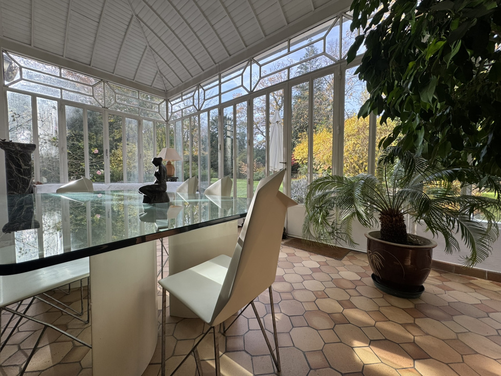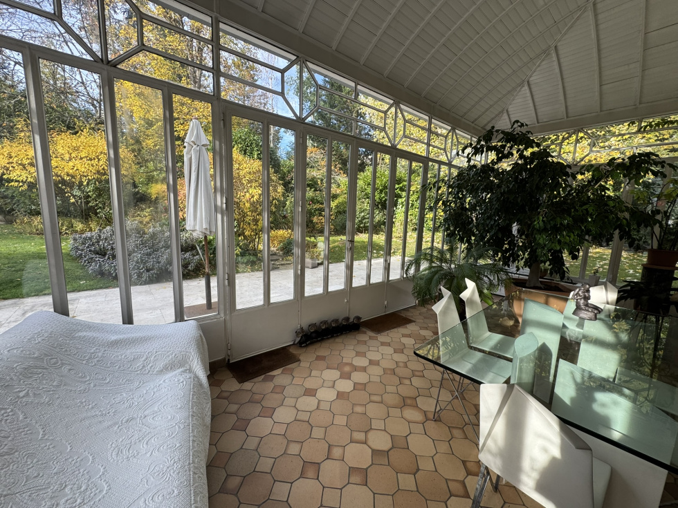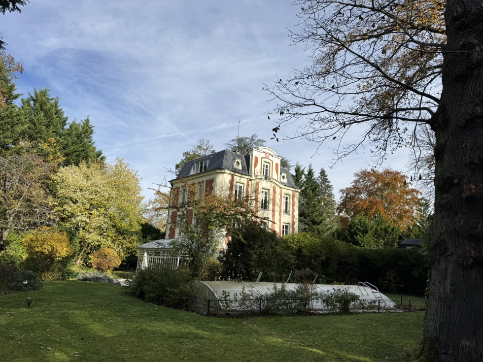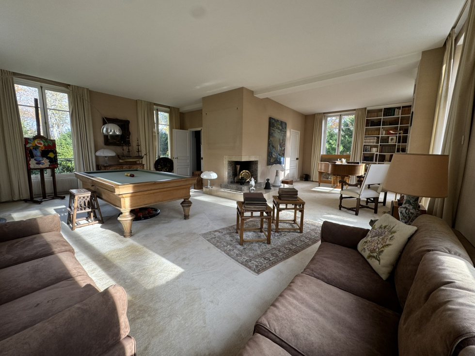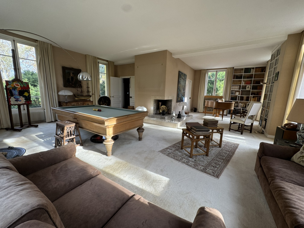 Hotel particulier de 400m² sur 2700m² de terrain sur 3 niveaux avec ascenceur comprenant: au rez de chaussée, belle entrée, salon cheminée tripe expo sur veranda de plain pied sur jardin sud, cuisine équipée office, vestiaires et wc invités. A l'etage, grand salon d'hiver triple exposition sur balcon avec cheminée. ( possibilité 3 chambres). 2ème étage, 2 chambres avec leurs SDB et une cuisne équipée. 3ème étage, grande suite avec salle de bain/douche. Cave en sous-sol avec chaudière au gaz. Annexe de 140m² divisée en 2 logements de service. Garage ouvert de 4 voitures Piscine couverte à rénover. Au sein du parc privé, gardienné et sécurisé, grand calme entre la forêt de Fosses Reposes et le parc de Saint-Cloud.