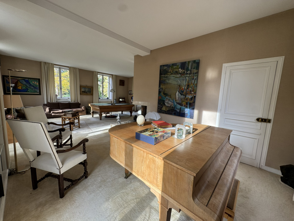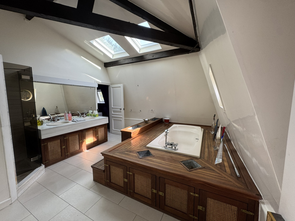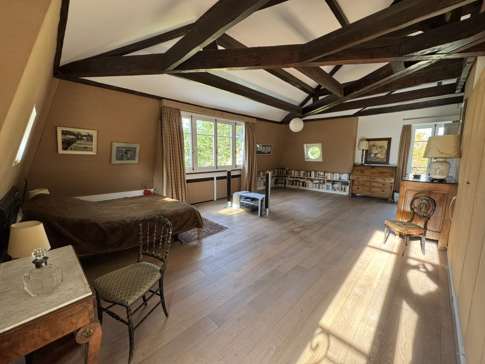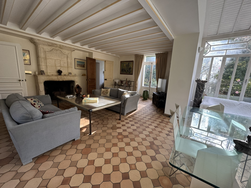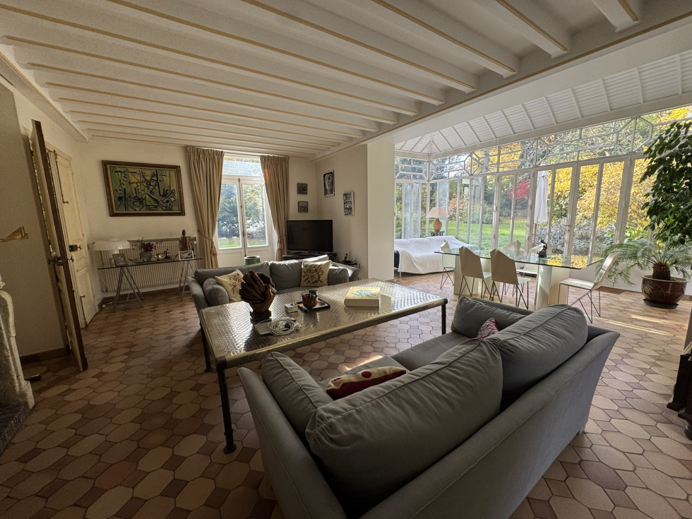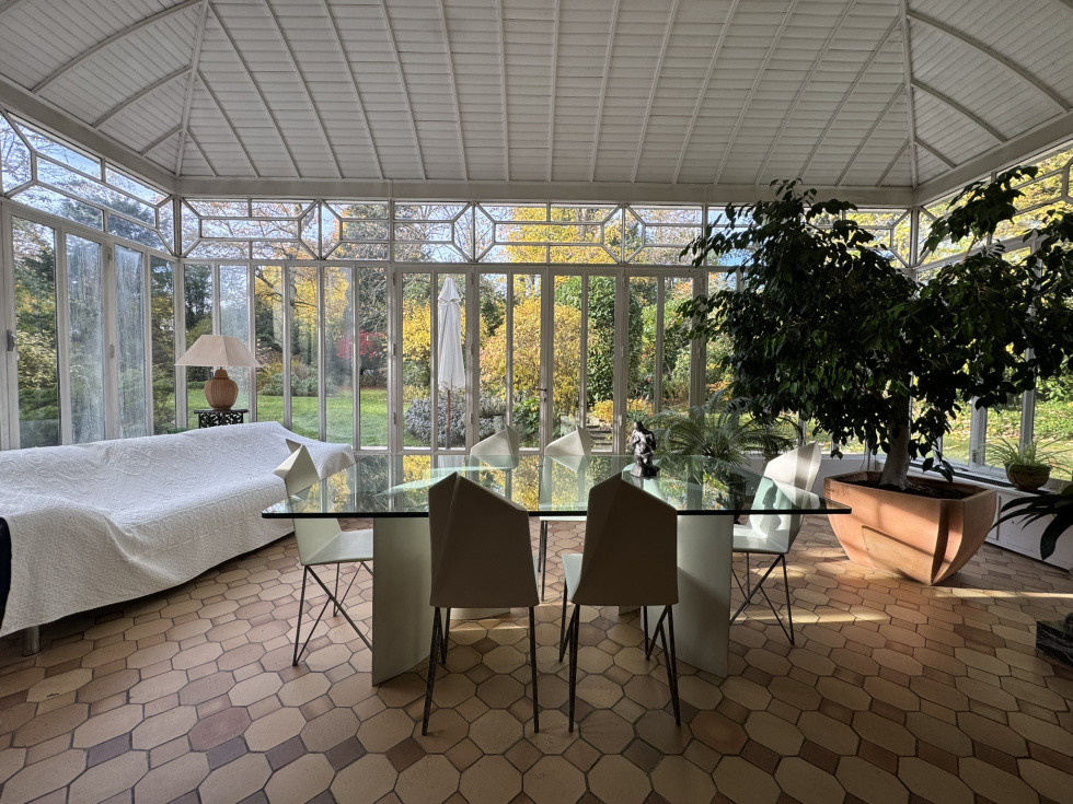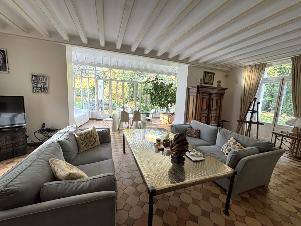 Hotel particulier de 400m² sur 2700m² de terrain sur 3 niveaux avec ascenceur comprenant: au rez de chaussée, belle entrée, salon cheminée tripe expo sur veranda de plain pied sur jardin sud, cuisine équipée office, vestiaires et wc invités. A l'etage, grand salon d'hiver triple exposition sur balcon avec cheminée. ( possibilité 3 chambres). 2ème étage, 2 chambres avec leurs SDB et une cuisne équipée. 3ème étage, grande suite avec salle de bain/douche. Cave en sous-sol avec chaudière au gaz. Annexe de 140m² divisée en 2 logements de service. Garage ouvert de 4 voitures Piscine couverte à rénover. Au sein du parc privé, gardienné et sécurisé, grand calme entre la forêt de Fosses Reposes et le parc de Saint-Cloud.